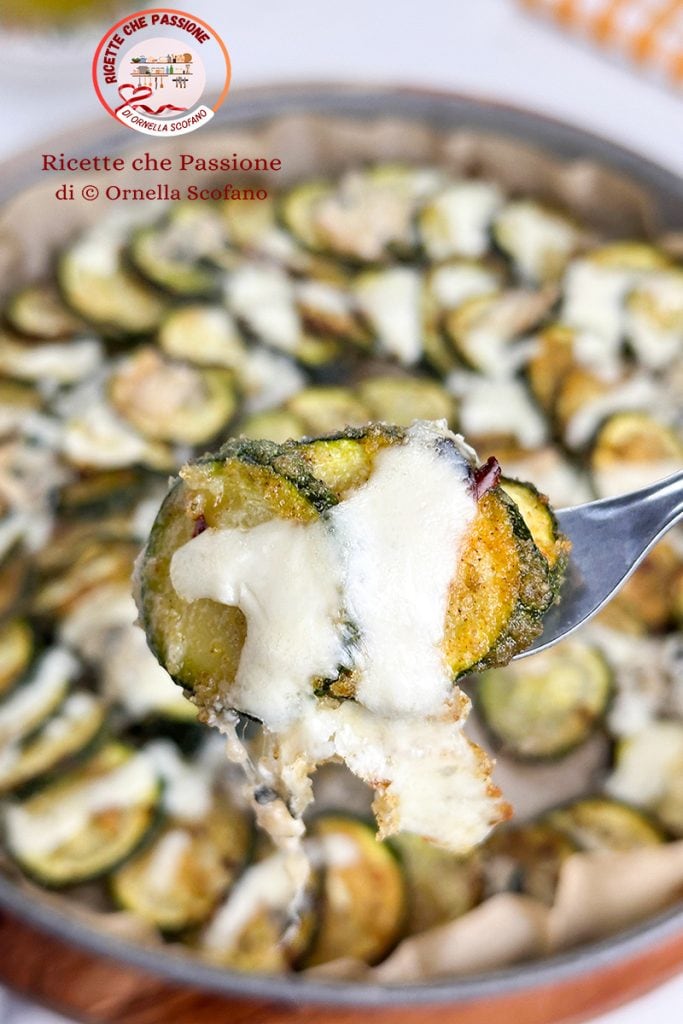Remove from oven and enjoy your cheesy oven-baked zucchini with mozzarella and gorgonzola.