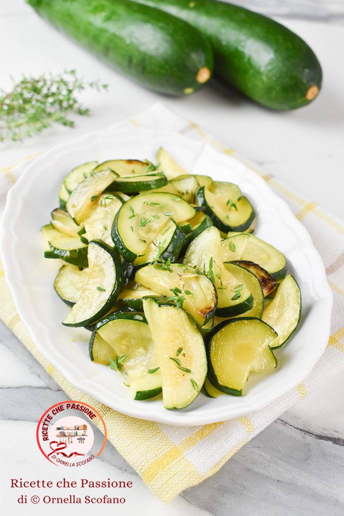 Sauteed zucchini, the quick and light summer side dish, great to eat both hot and cold. They are a wonderful base recipe for seasoning pasta, even blended, for a good zucchini pesto, or zucchini cream, or to enrich our summer salads, pasta, rice, or even vegetables or legumes, with the addition of canned tuna or salmon, even smoked. In short, very versatile zucchinis, extremely easy to prepare in just a few minutes. No need to stand in front of the stove for hours; it takes just 10 minutes, and they are ready for all our needs. If you like, you can add a couple of cherry tomatoes halfway through cooking.