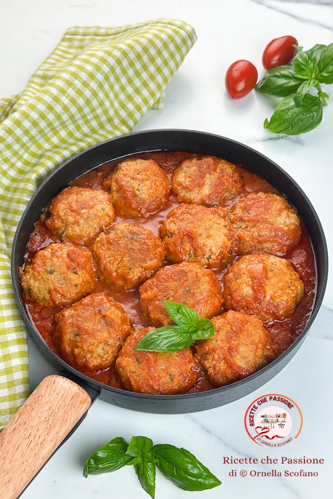 Soft meatballs in tomato sauce, made with beef, my favorite. Today’s recipe is grandma’s for perfect meatballs in sauce without pre-frying, making them lighter, without breadcrumbs, making them very soft, and they are also milk-free. That’s because the mixture of these meatballs is the classic Calabrian meatball mix, with garlic, parsley, eggs, stale bread soaked in water, and a mix of grated pecorino and parmesan that gives a really special taste to the meatballs and sauce. If you prefer, they can also be made spicy. Meatballs in sauce are an excellent one-dish meal, but also delightful as a second course, and the sauce can also be used to dress pasta. So I would say to try them right away, and thus I leave you with my detailed step-by-step recipe to make truly perfect, tasty, and soft meatballs in sauce, a pleasure just like grandma’s.