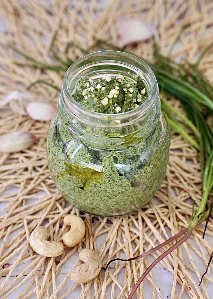 Agretti pesto is a fresh and genuine dressing with a unique and unmistakable flavor.