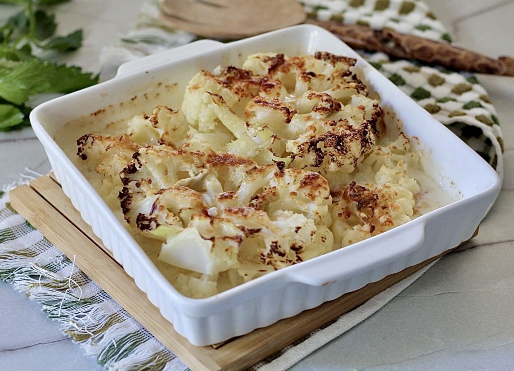 With this special gratin, even those who don’t particularly love cauliflower will be won over; it’s a smart way to ‘disguise’ a healthy side dish in a delicious preparation.