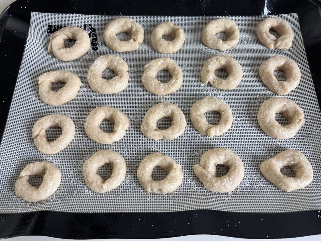 Once the dough is ready, it’s time to shape the taralli. Take a small amount of dough (about 20-25 grams) and roll it to form a thin strip about 4 inches long. Join the ends of the strip, giving it the classic ring shape. It is important to seal the ends well to prevent the tarallo from opening during baking.
