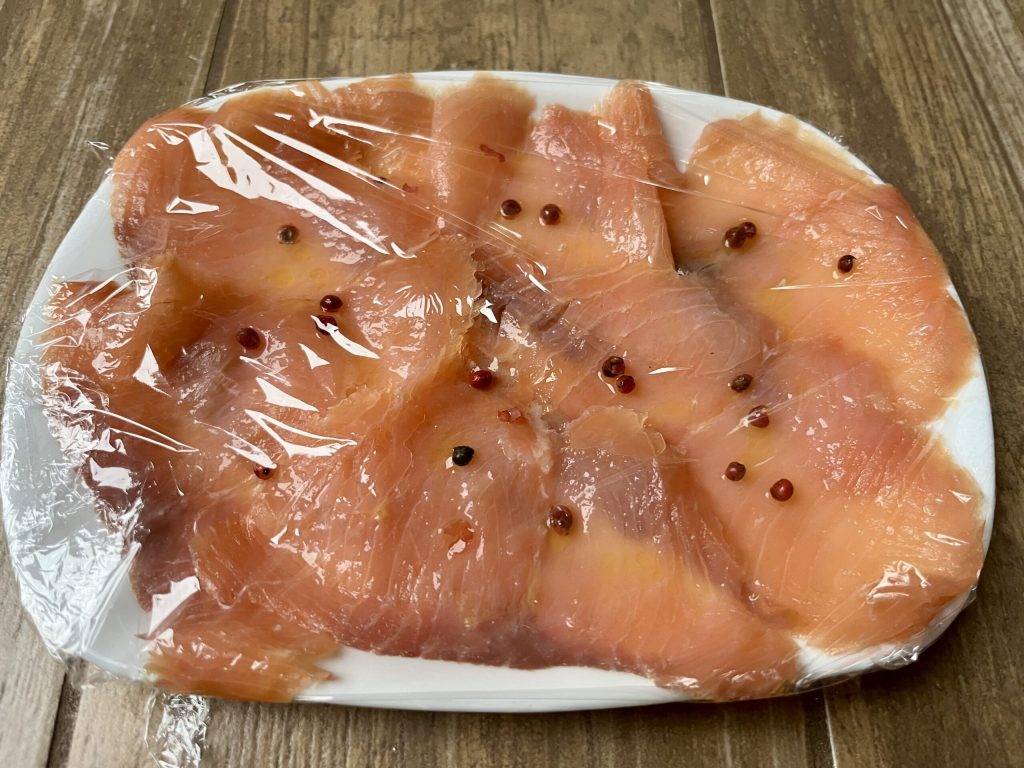 Marinating with orange juice makes smoked salmon soft, fragrant, and delicate, offering a sensation of freshness ideal for refined appetizers or elegant cold dishes. The orange marinade is not for cooking but just to enrich its flavor.