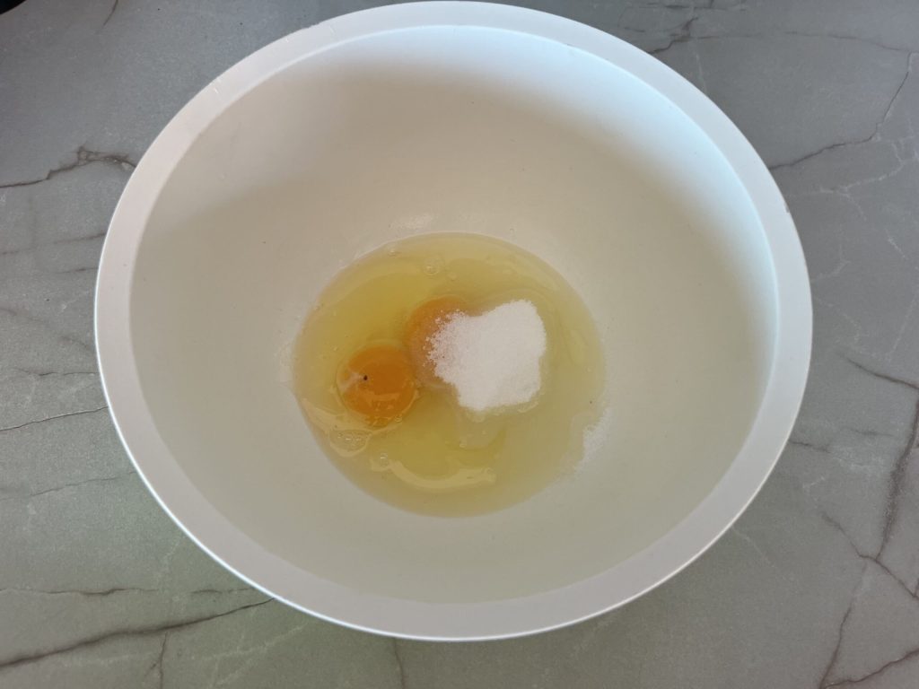 In another bowl, crack the eggs and add the sugar and a pinch of fine salt