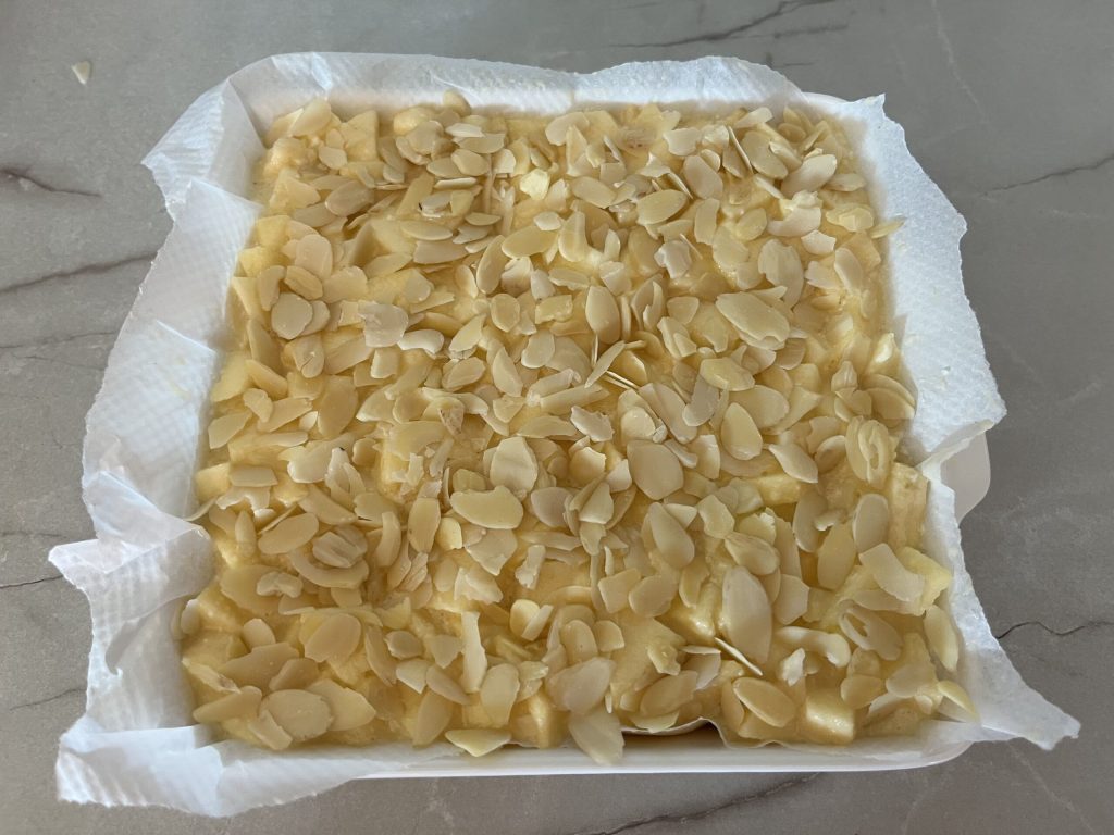The quick apple cake is a creamy apple dessert inside and crunchy outside thanks to the almond flakes.