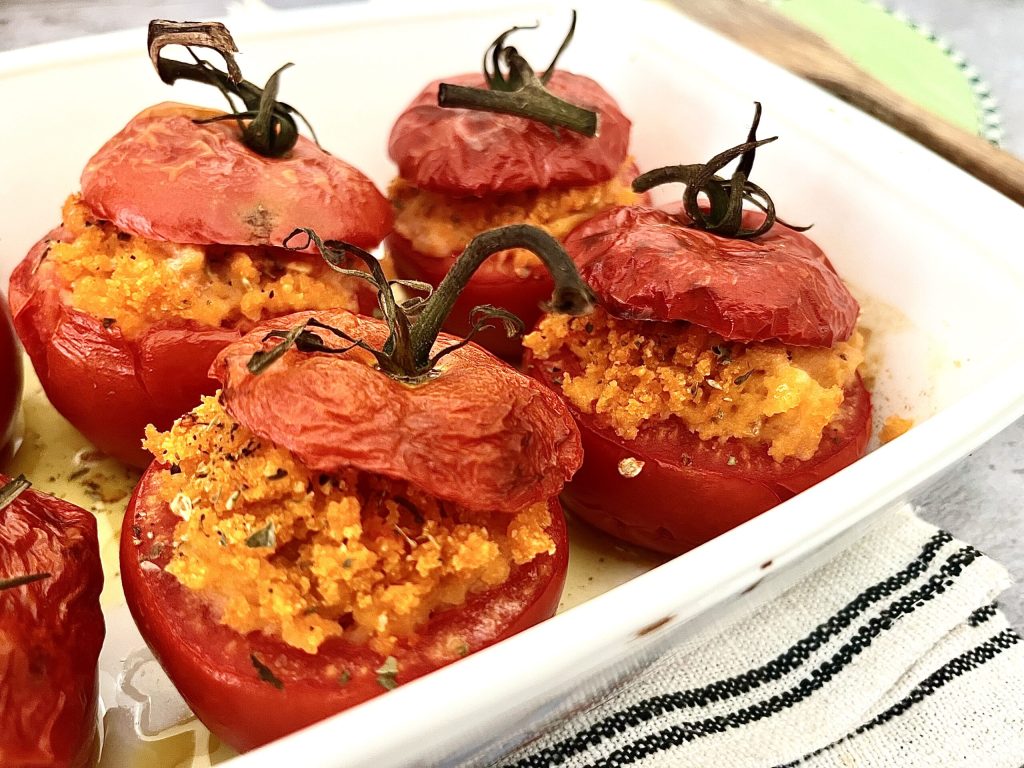 Easy to prepare and even though they’re baked, they’re a true delight in the summer, and not only then. The tomatoes used, on the vine, are fortunately available during all seasons, so any time is a good time to enjoy them.