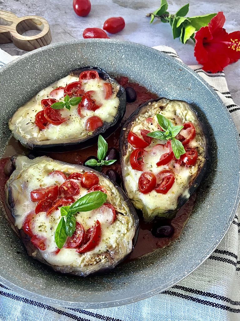 The eggplants stuffed and cooked in a pan are super tasty and cheesy. Easy to prepare, they’re perfect for those who don’t want to turn on the oven. Accompanied by a good tomato sauce, it’s mandatory to mop up the sauce with bread at the end of the meal.