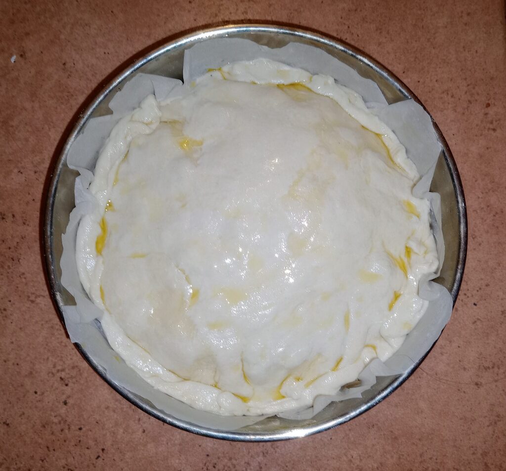 Cover with the other half of the sheet, sealing the edges well and brushing the surface with a drizzle of oil.