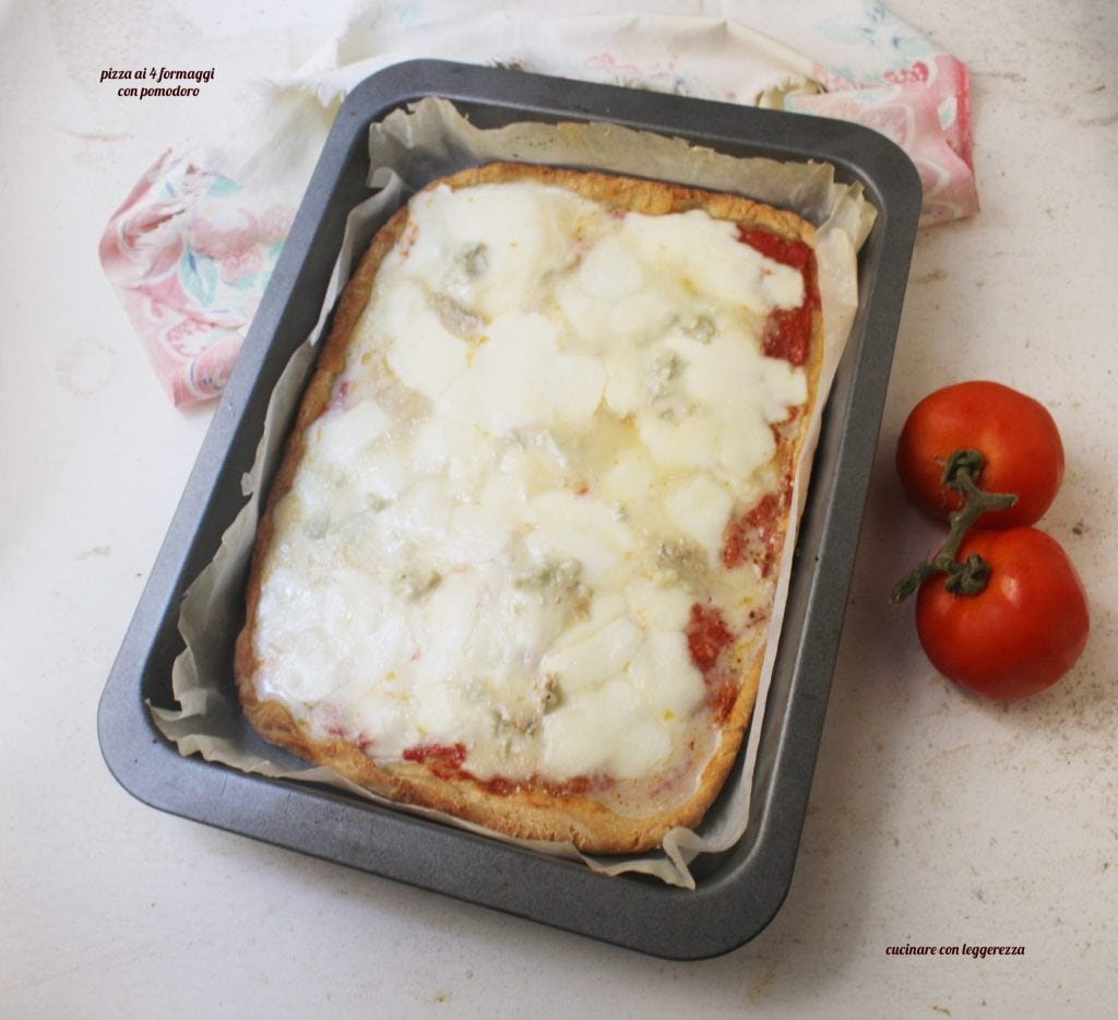 The four cheese pizza with tomato is a very tasty leavened food 😉