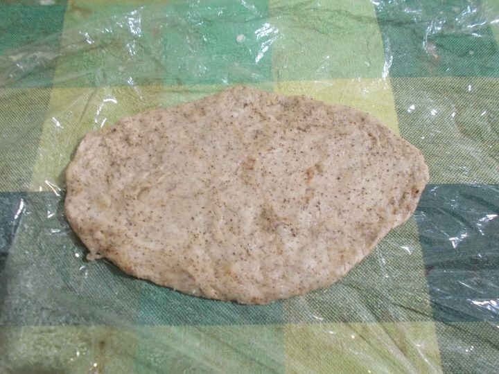 • Take the cannoli dough and roll it into a thin sheet of 1-2 mm using a pasta machine or rolling pin.