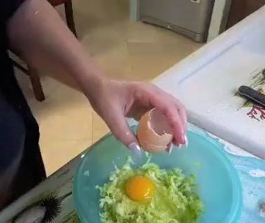 Grate the zucchini and add it to the egg, season with salt and pepper, and combine with the breadcrumbs, mixing well.