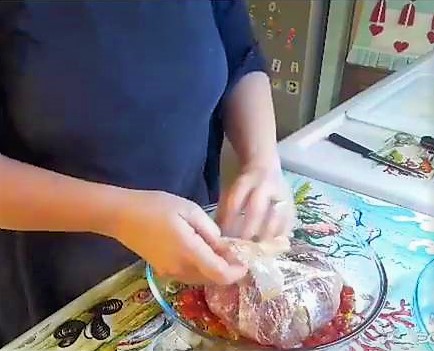 Then grab the edges of the plastic wrap, lift them upwards and..