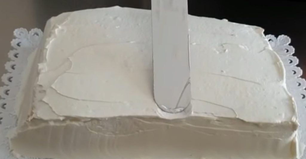 then with a long-bladed knife try to spread the cream well, place the blade in the center, and press, giving it a line that suggests an open book.