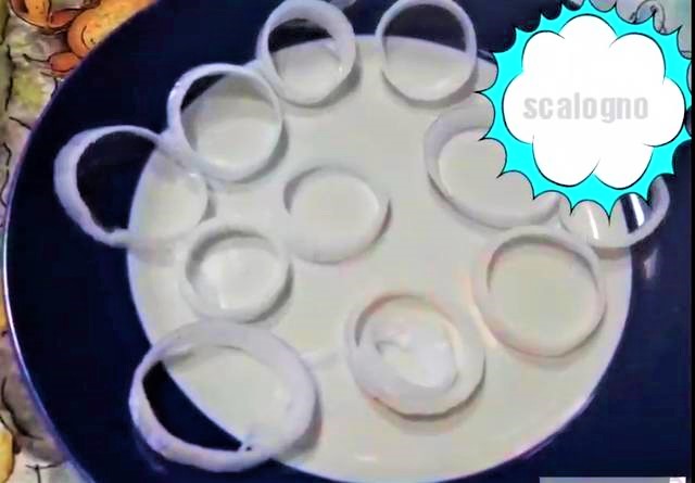 Peel the shallot and slice it, so you get circles about 1/4 inch thick.