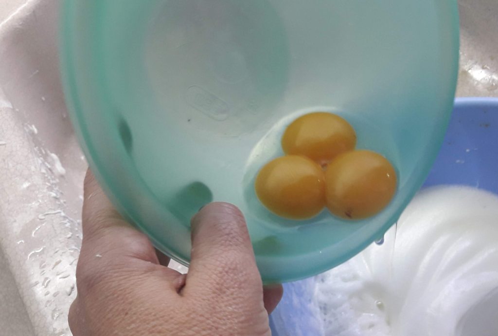 Once they are well chilled, start whipping the cream, placing it in the stand mixer’s bowl along with the sugar and vanillin.