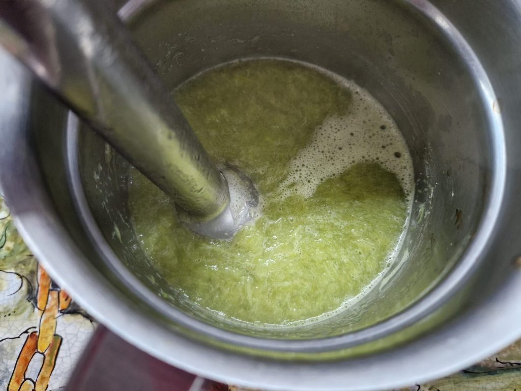 • and blend the green part with an immersion blender.