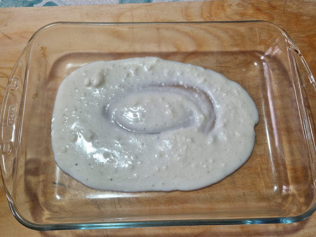 Lay the first layer of pasta sheets, cover with part of the ricotta-spinach mixture,