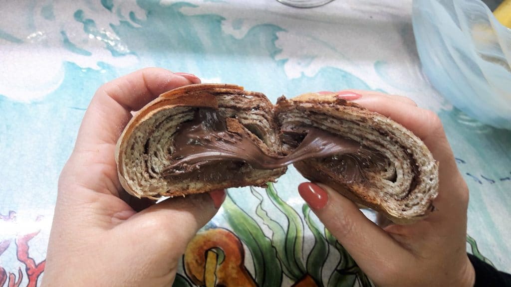 For beginners, it is advisable to fill the croissants after baking, either with a pastry bag or simply by making a lateral cut.