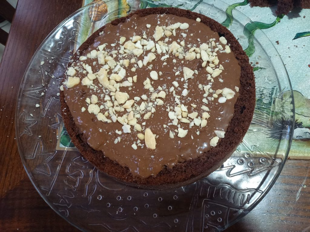• Cover with the second sponge cake disk and spread another layer of cream on the top and sides of the cake. Don’t worry if there are irregularities, because we will cover them with the sponge cake scraps.