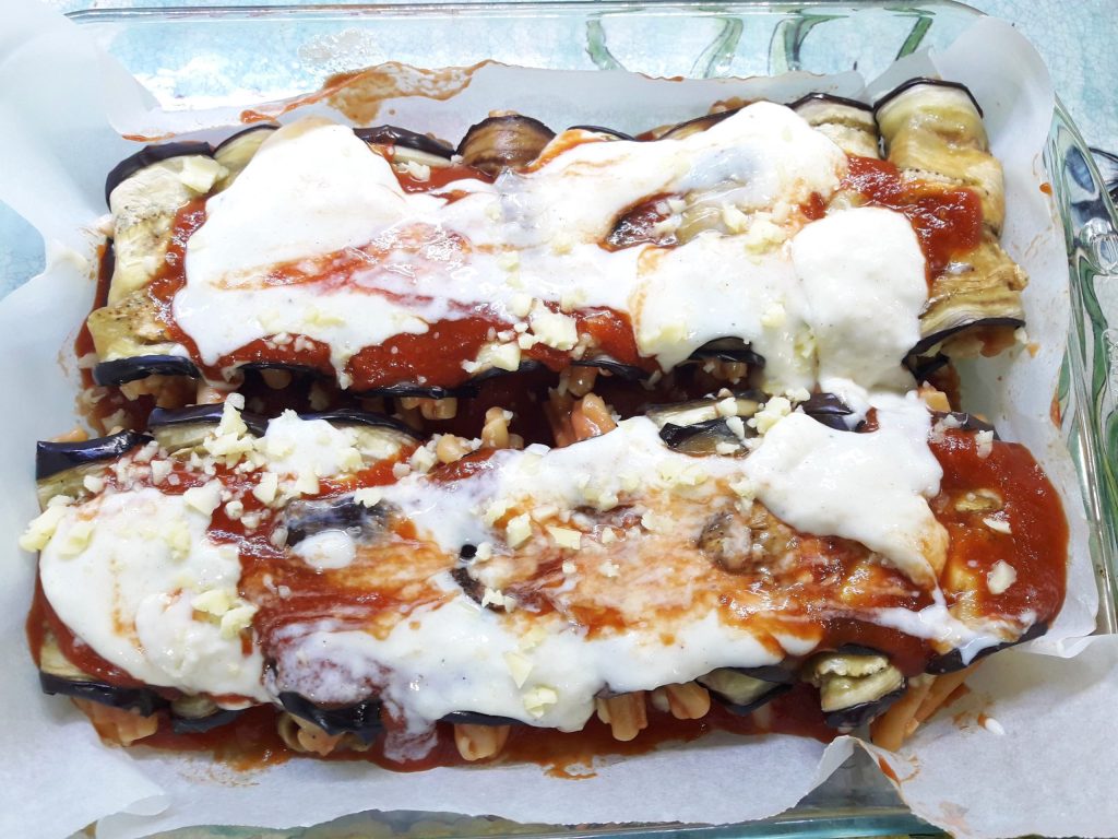 Here are your Eggplant Rolls with Casarecce and Béchamel.