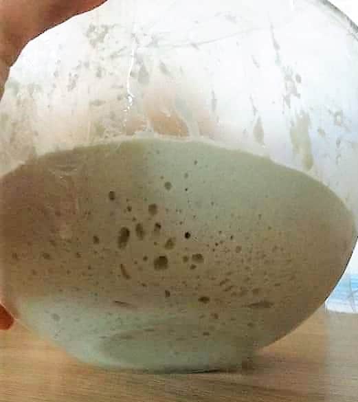 Stir with a teaspoon, cover with plastic wrap and let rise at room temperature in summer or in the warm oven with the light on if it is winter.