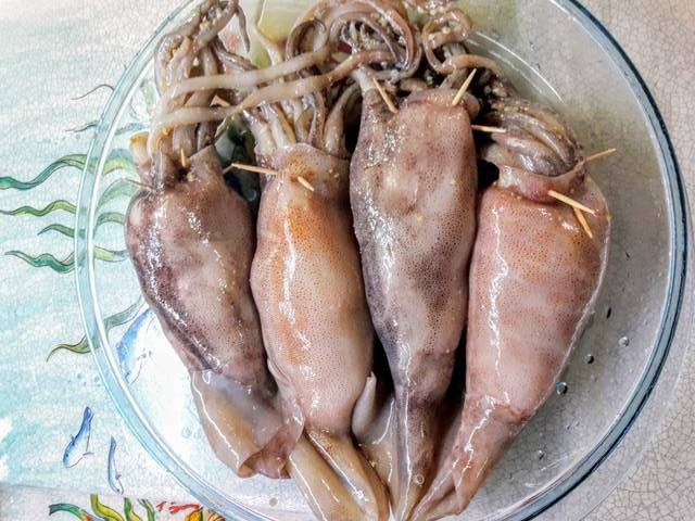Preparation of Grilled Squid Stuffed with Prawns