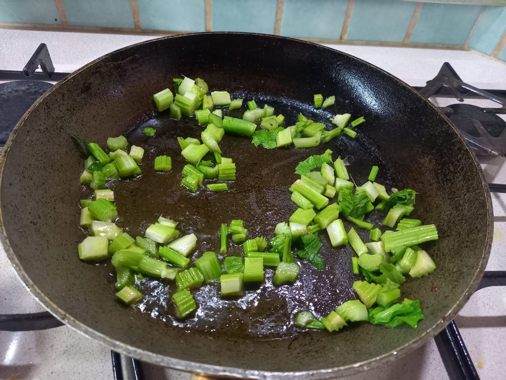 Now with the remaining oil, sauté the celery pieces for 2 minutes,