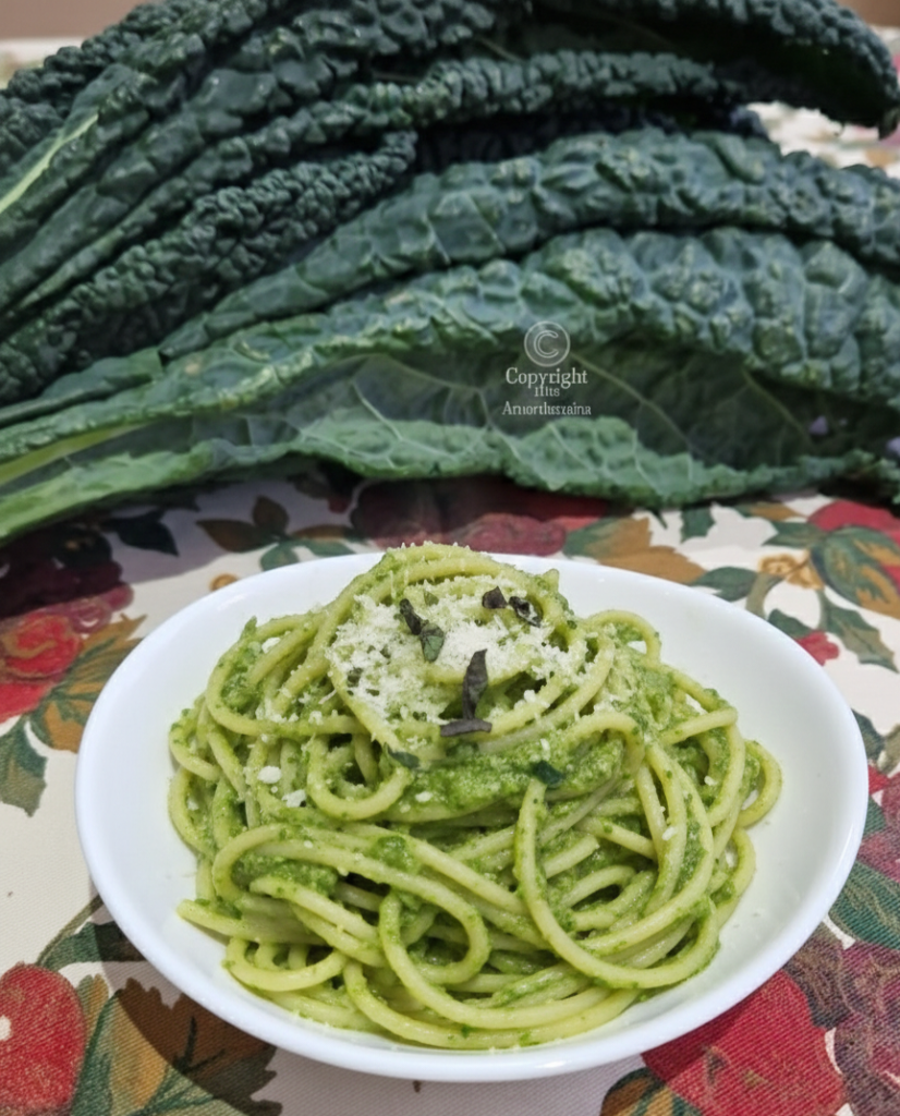 Today I present kale and almond pesto, to season pasta or even croutons and bruschetta.