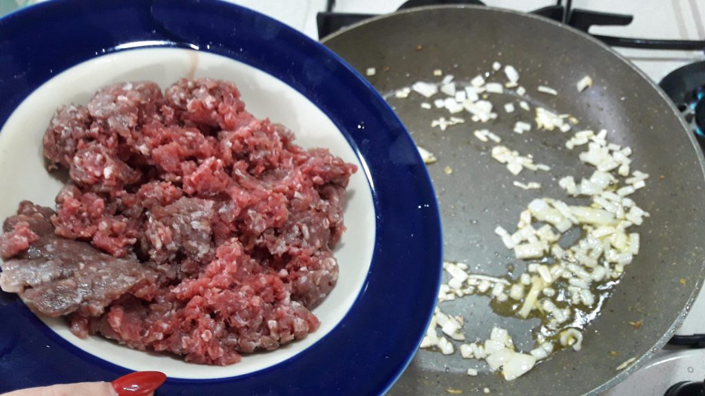 In a pan, put the chopped onion and the oil you have, and let it fry for at least 2 minutes, then…