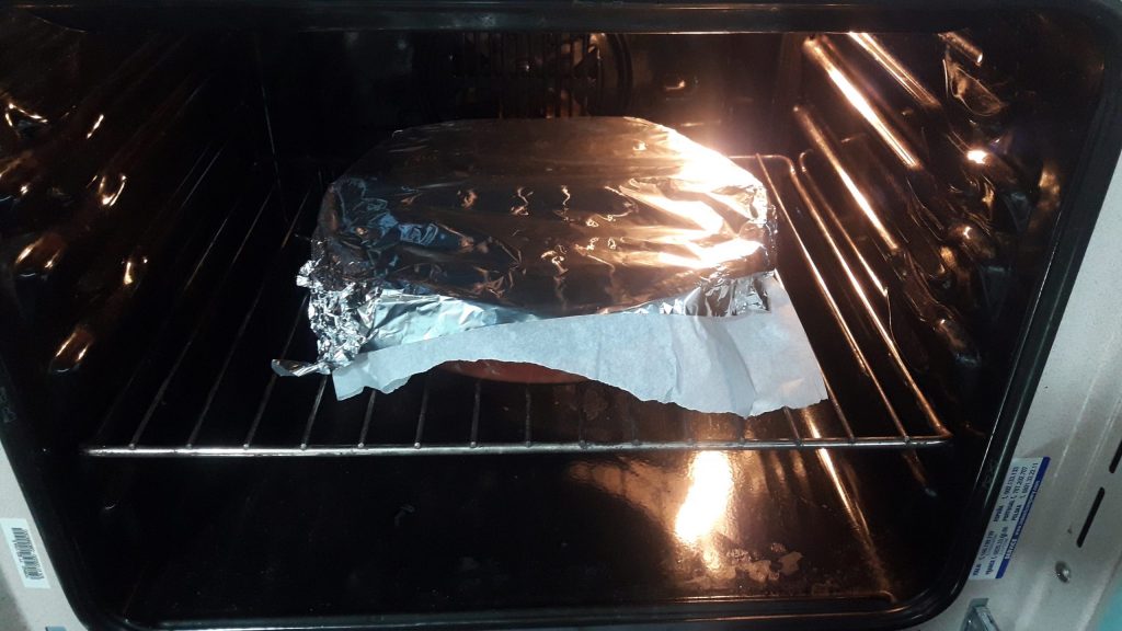 Seal the baking dish well, this will not only avoid splashes all over the oven but will also be essential to maintain the right humidity and heat during cooking.
