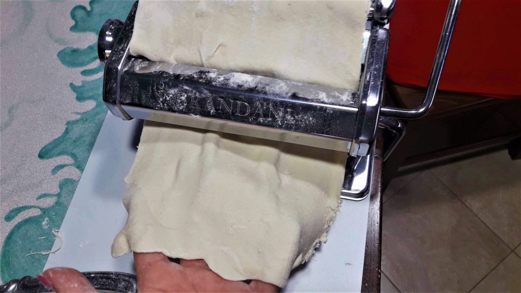 • Next, set up your pasta machine, starting with the medium thickness, and pass the dough through 3 times. Then set it to the thinnest setting and pass each piece through again.