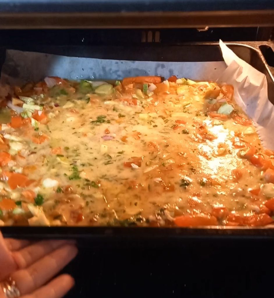 The vegetables provide the right hydration to the omelette, baked in the oven.