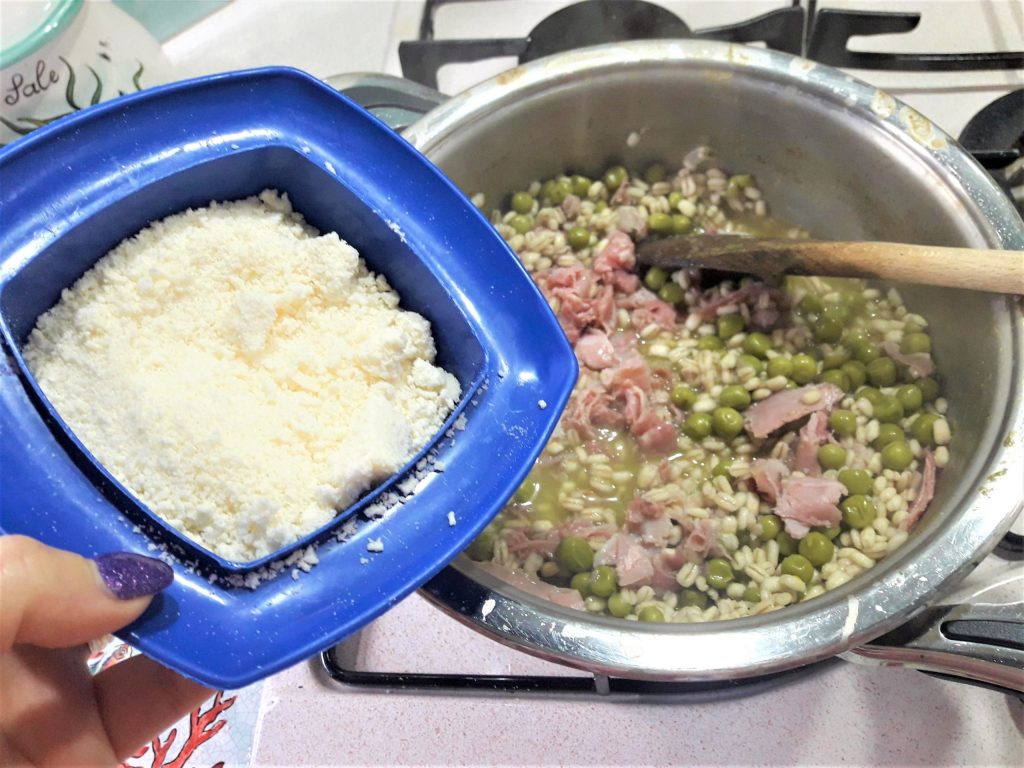 Pearled barley with peas and ham. Today I’m offering you a dish with a spring flavor, beautiful to look at with all its colors, tasty and easy to make.