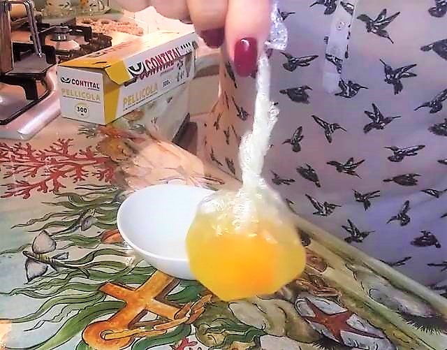After the time has passed, carefully open the plastic wrap and pour the egg onto the cabbage, seasoning with salt and pepper to taste.