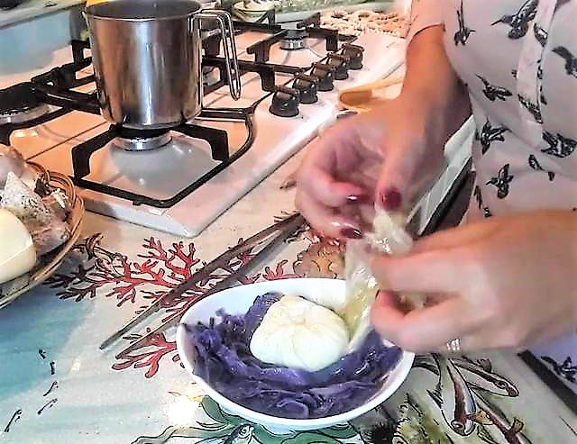 Preparation of Poached Egg on Braised Red Cabbage