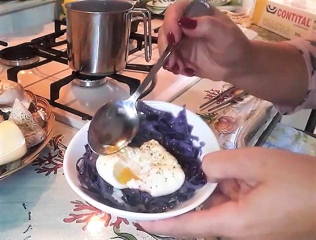 Here is the Poached Egg on Braised Red Cabbage ready to serve.