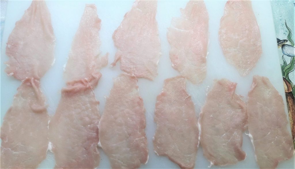 - 14 oz pork loin (thinly sliced; you can substitute veal, chicken, or fish fillets.)