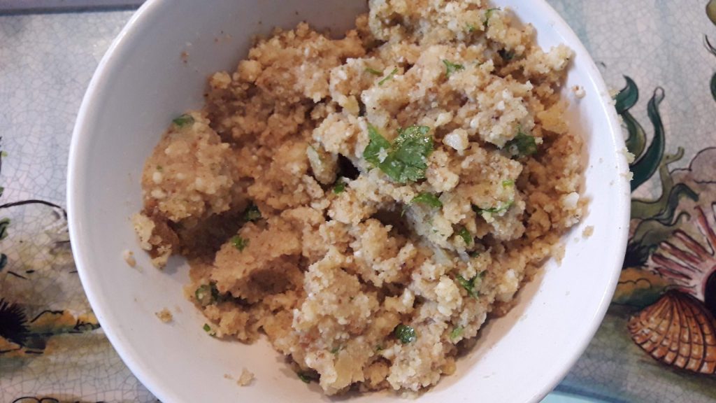 • In a bowl, put the breadcrumbs and dampen them with a little olive oil and water, and season with salt and pepper, and other seasonings to your taste. I, for example, add a little garlic, parsley, and pecorino. But this is subjective.
