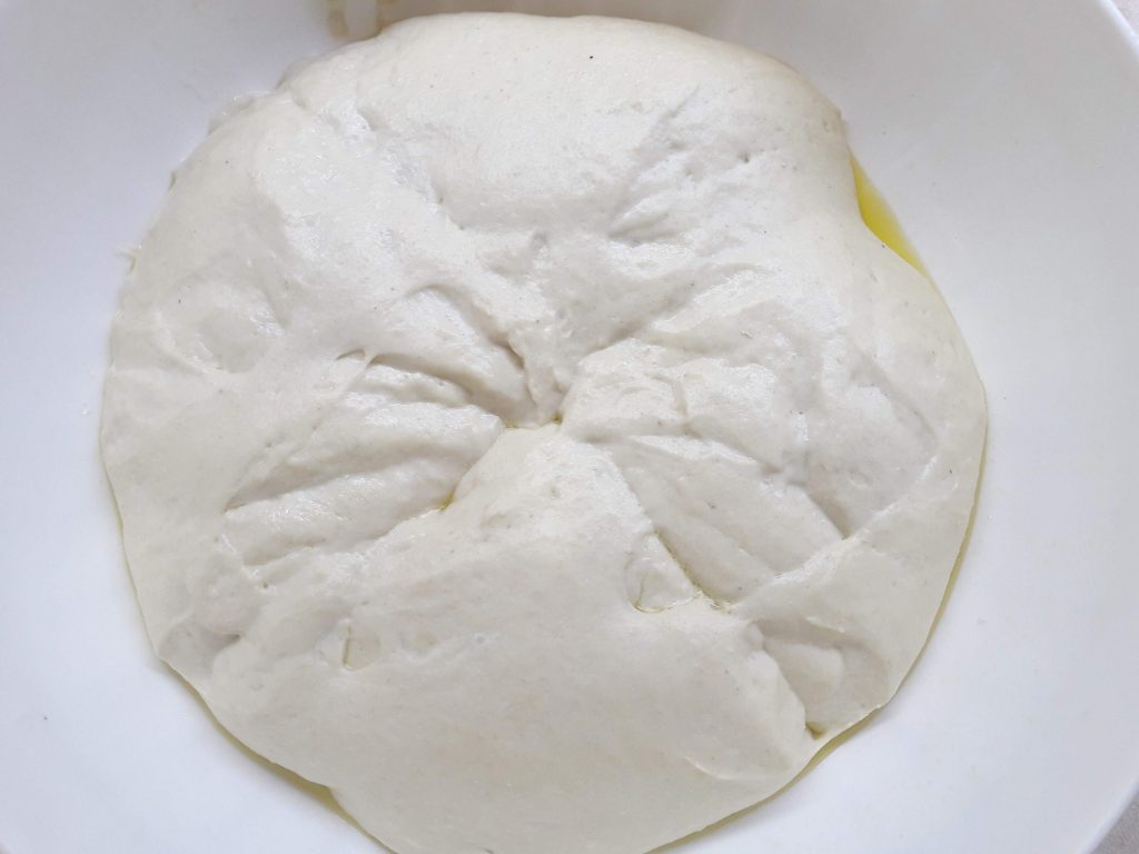 • Let the dough rise for 2 hours covered with plastic wrap and a well-rolled tablecloth.
