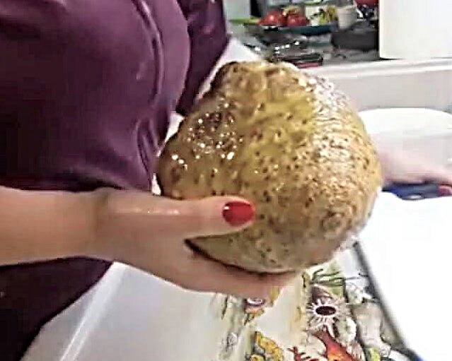 wash the celery root and brush it. Cut into slices about 0.4 inches thick, and peel them.