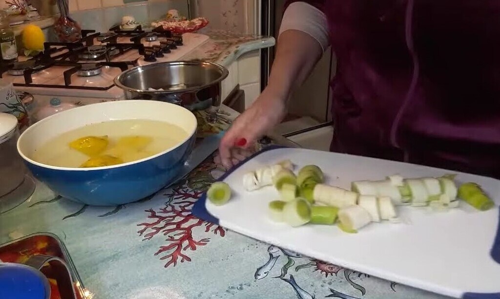 Bimby celery root cream: place the leek, celery root, and 40 g of extra virgin olive oil in the jug, sauté: 5 min./248°F/speed 1, with the basket instead of the measuring cup.