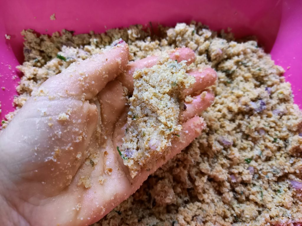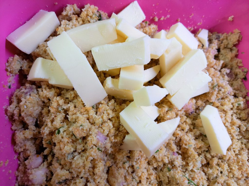 - 5.29 oz breadcrumbs (from stale bread)