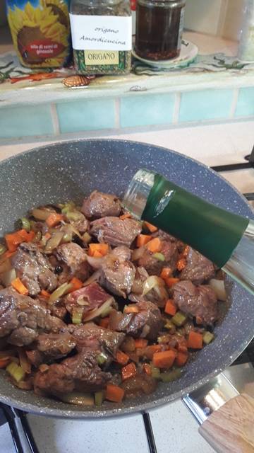 After the time has passed, pierce the meat with a fork, and it should seem almost cooked, then add the potato chunks and the cabbage or savoy, depending on what you’ve chosen…