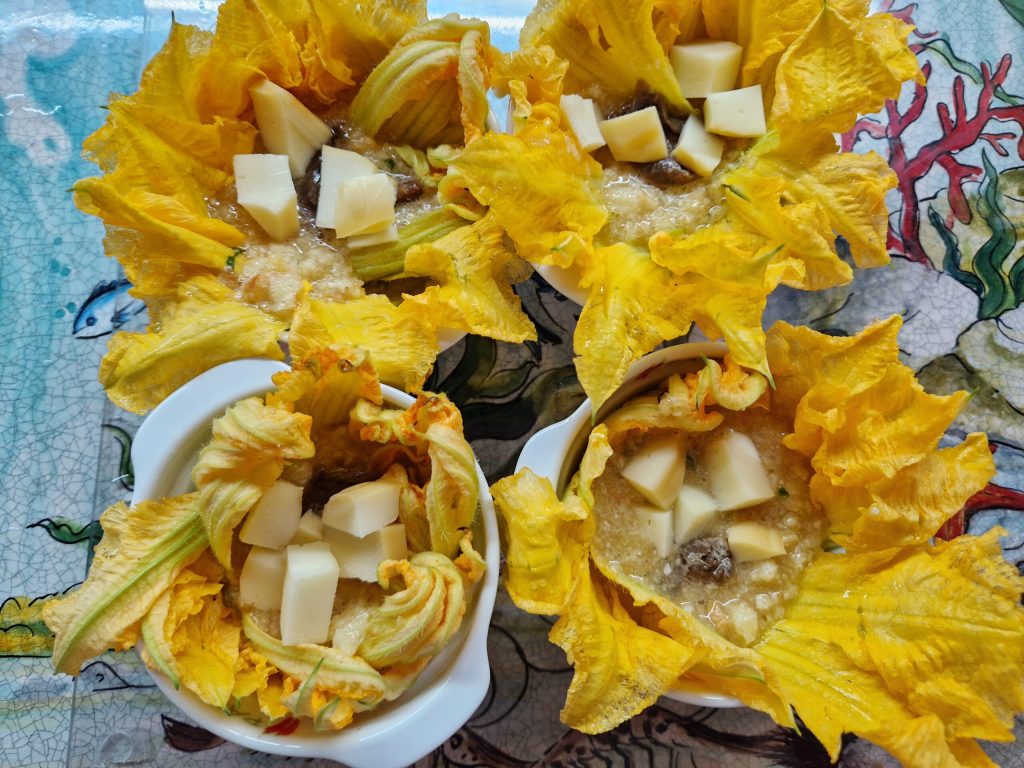 Stuffed Zucchini Flower Bundles