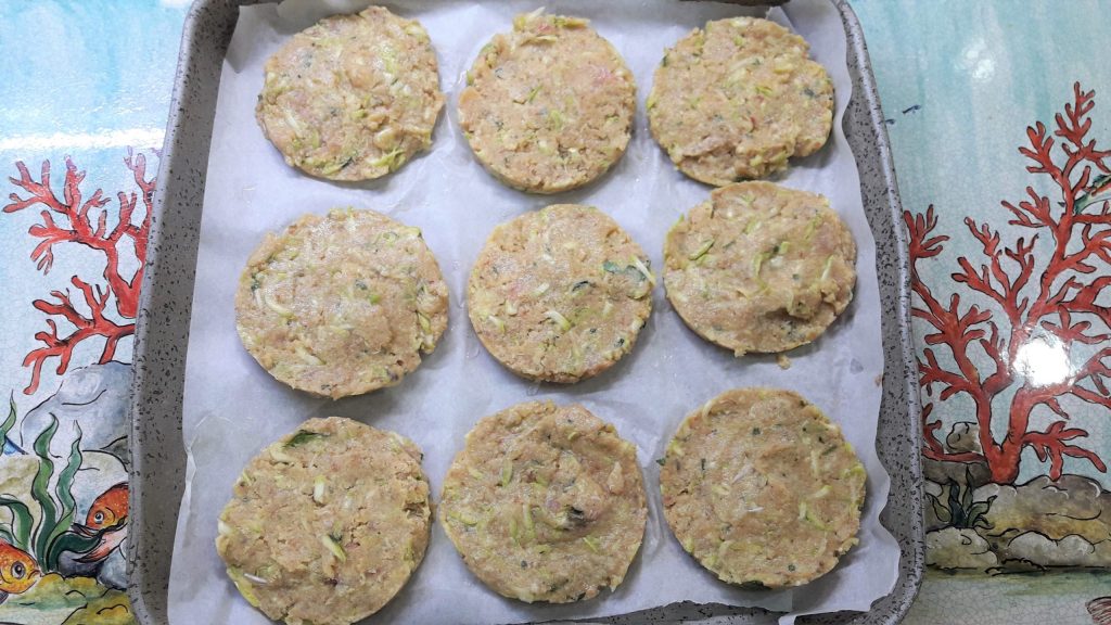 Swordfish and zucchini burgers baked or air-fried.