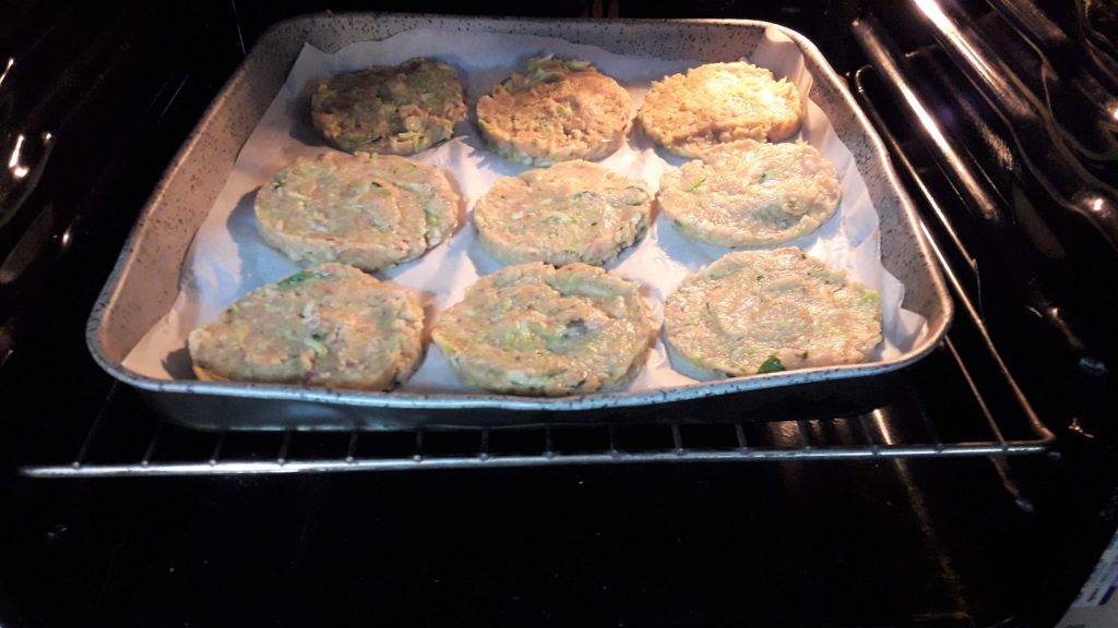 Here are the Swordfish and Zucchini Burgers ready from the oven.