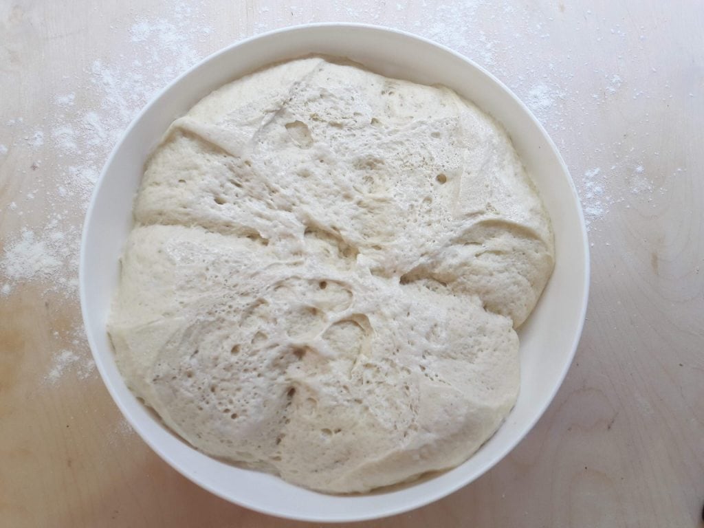 After the rising time, the dough will look like this.
