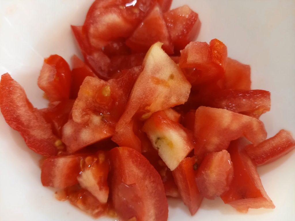 To enrich the dish, when adding the tomatoes, also add a little minced meat.