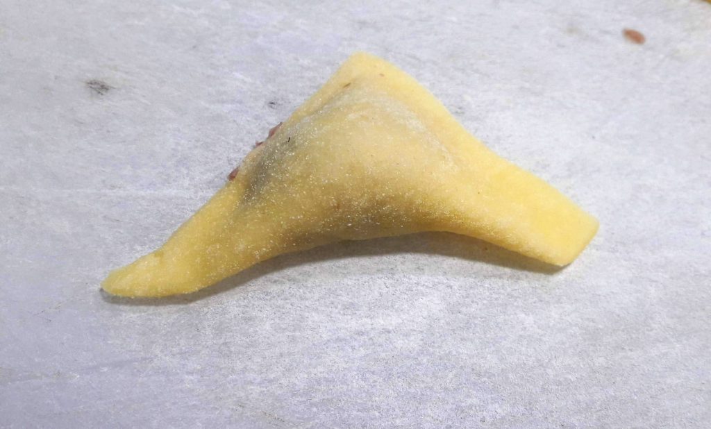 • At this point, I folded the dough into a triangle, ensuring to expel all the air. This is very important; otherwise, they might open during cooking.