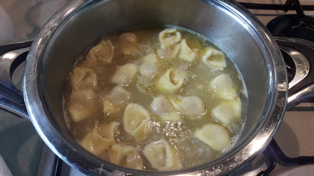 I strained all the broth and placed it in another pot. Brought it back to a boil and immersed the tortellini.